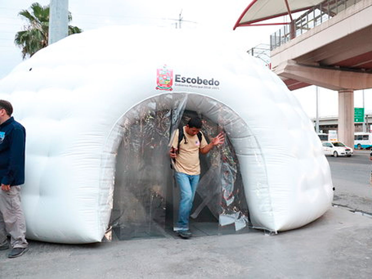 View More Por Covid-19, colocan túneles para desinfectar hasta 30 personas por minuto en Escobedo NL.Año: 2020