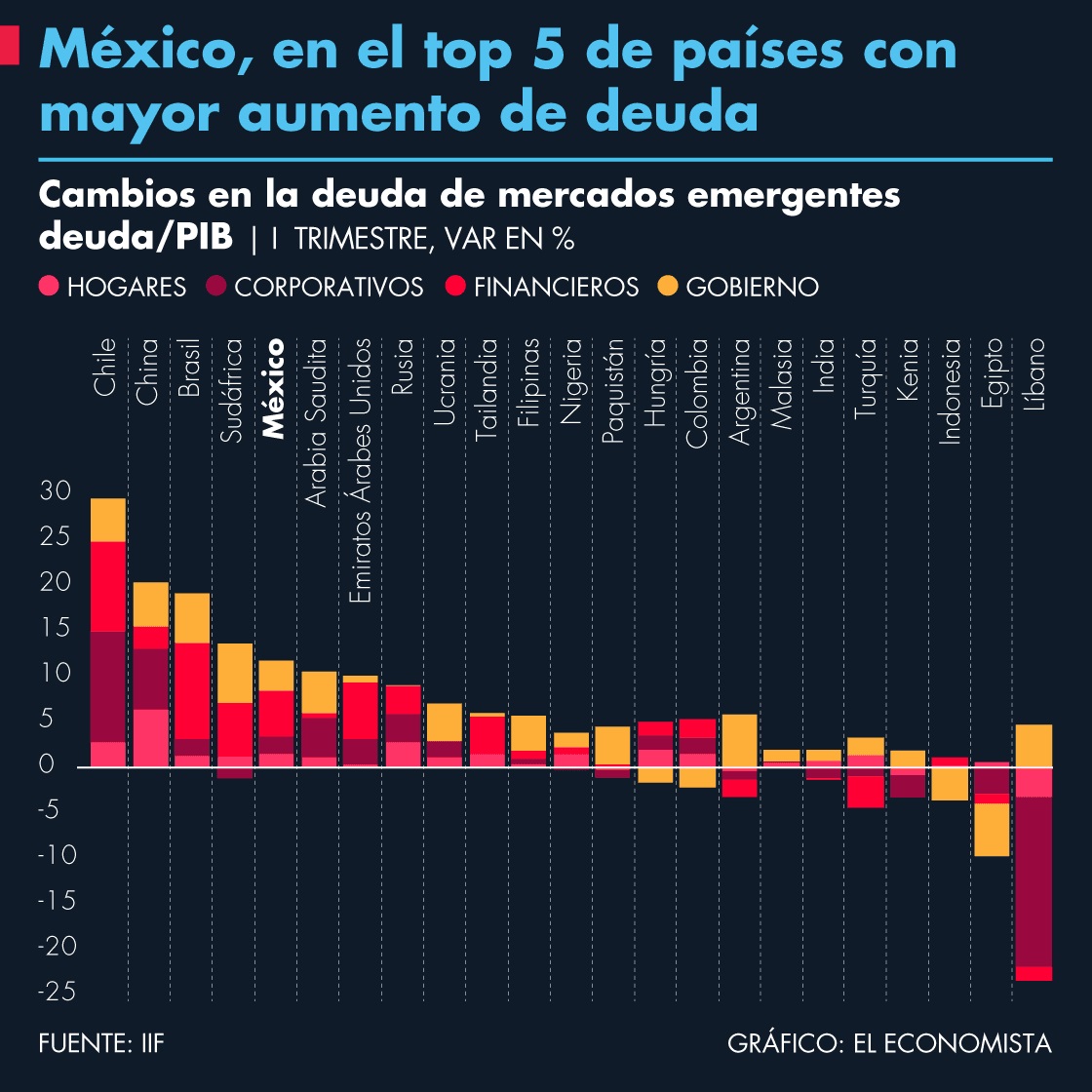 En los primeros tres meses de 2020, excluyendo el sector financiero, la deuda de China, Turquía y México registró un mayor aumento en relación deuda/PIB.